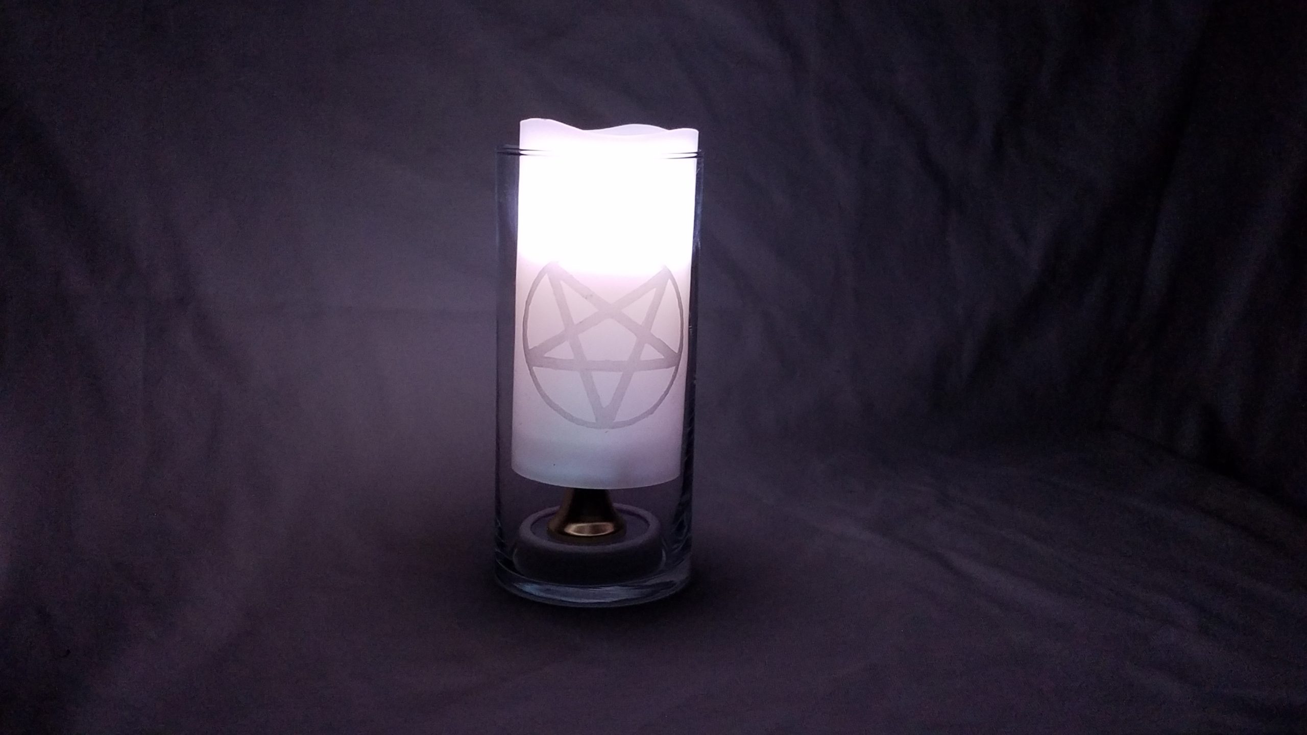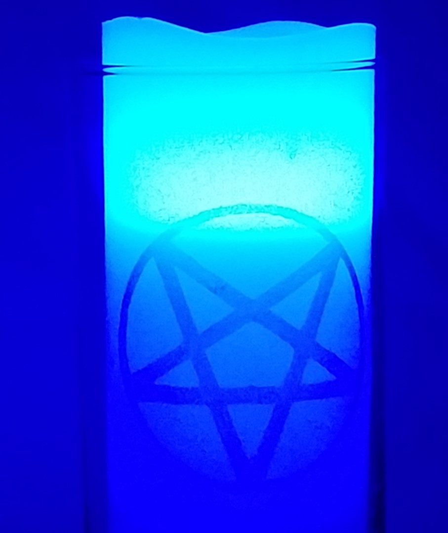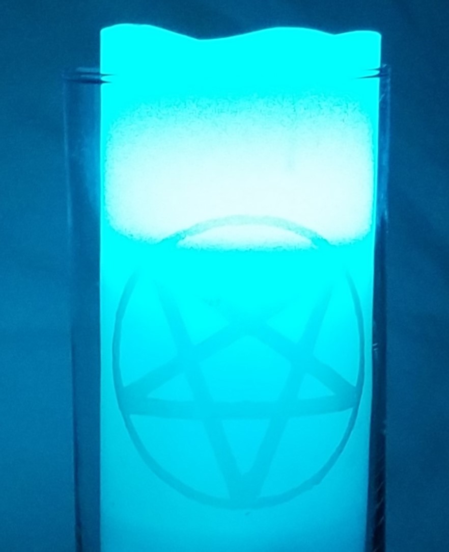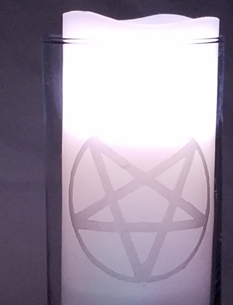 CVPENTAGRAM13x1 Welcome to the amazing and beautiful side of the occult! This Pentagram etched-glass by hand collection is a stand out where ever it is placed, always commanding the respect it deserves.