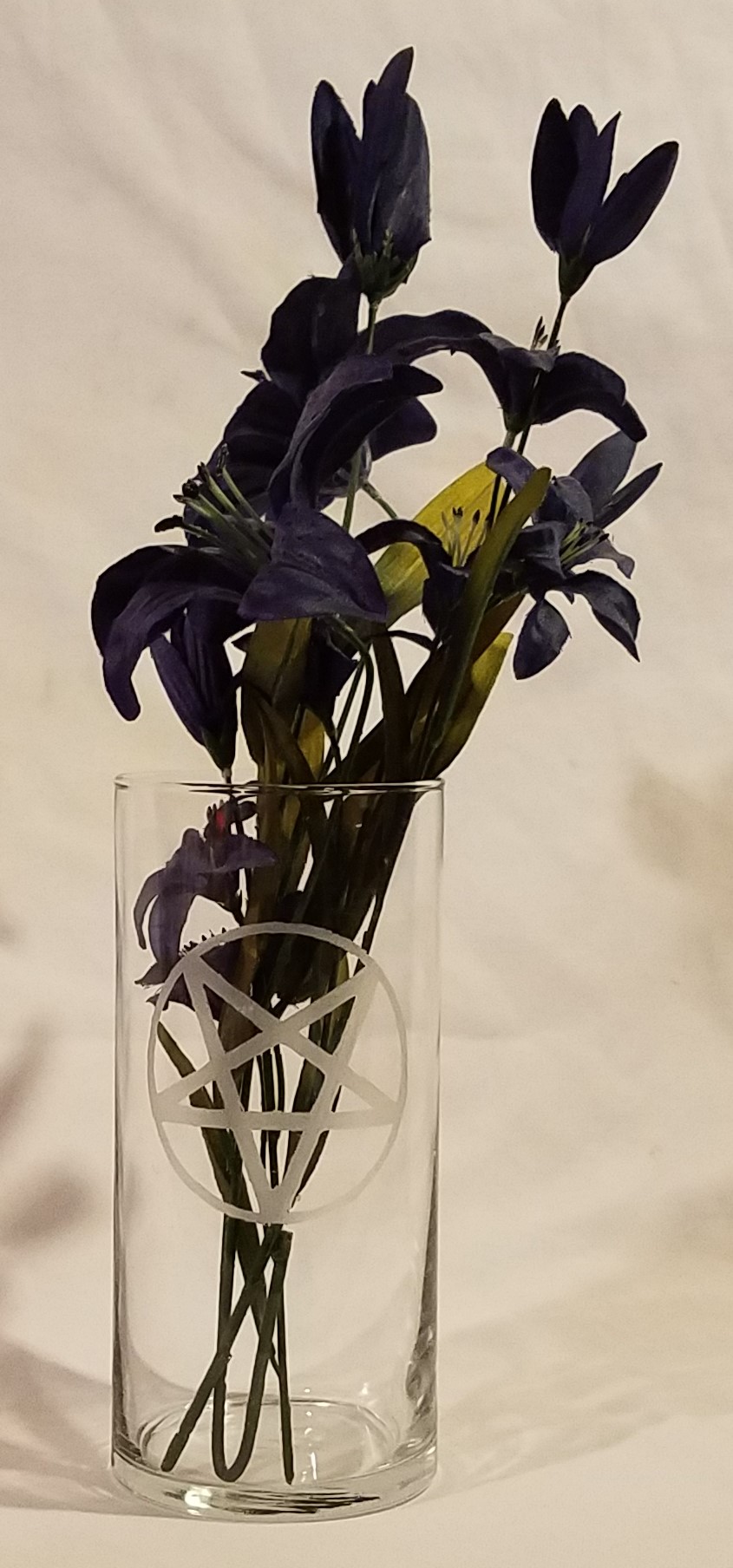 This quality etched-glass collection includes one (1) Pentagram Pentagram pillar sized candle holder which can also be used as a flower vase -2 FUNCTIONS IN ONE! A perfect addition for your spiritual inspiration.